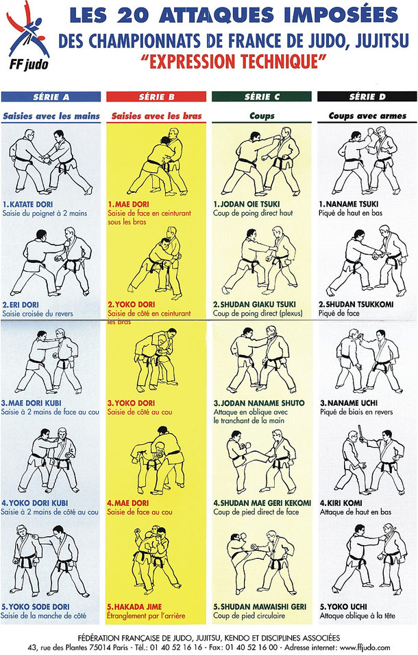 Judo Progression française (programme par ceinture) blanche & jaune jaune & orange orange & verte bleue & marron Termes et gestes d’arbitrage HAJIME JUDO JUDO en lignes Jujitsu Les 20 attaques imposées HAJIME JUJITSU Jean-Michel DOUDOUX, Les meilleurs liens Ju Jitsu et arts martiaux sur le Web